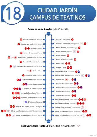 La línea 18 de la EMT de Málaga es una línea transversal cuyo principal objetivo es conectar los distritos del norte de la capital con el Campus Universitario de Teatinos. Asimismo comunica dos importantes centros hospitalarios en su recorrido: el Hospital Clínico y el Hospital Civil.