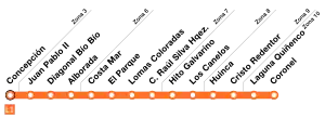 ![]() La Línea 2 del Biotrén incluye al antiguo puente ferroviario Biobío, que permite cruzar el río Biobío y conectar a San Pedro de la Paz con Concepción. | ||||