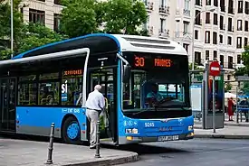 La línea 30 de la EMT de Madrid une el intercambiador multimodal de la avenida de Felipe II con el intercambiador multimodal de Pavones, en el distrito de Moratalaz.
