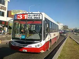 ![]() Un colectivo de la línea 31 por Nueva Pompeya con su viejo estilo color rojo. | ||