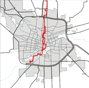 - Ida: De Viña del Mar y Colectora por esta - Av. V. Sarsfield - Arica - Las Peñas - Icho Cruz - Totoral - Laboulaye - La Falda - Gobernación - Río Negro - rotonda de Av. de Mayo - Río Negro - Defensa - Armada Argentina - Rotonda Las Flores - Av. V. Sarsfield - Pza. de las Américas- Richardson - Belgrano - M. T. de Alvear - Belgrano - 27 de Abril - Paraguay - Coronel Olmedo - Av. Colón - Av. Santa Fe - Palestina - Allende - Avellaneda - Baigorri - Lavalleja - 5 de Agosto - Sucre - De Constans - Fragueiro - M. de Mojica - Gordon - Luisiana - Newbery - Antonio de Marchi- Anasagasti - J. B. Justo - Storni - Payro - J.B. Justo - Av. El Chingolo - Calle Pùblica - hasta Callejòn Av. del Japòn.