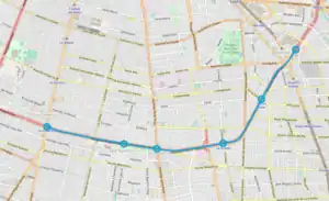 Las estaciones, en el sentido de oriente a poniente, son las siguientes: