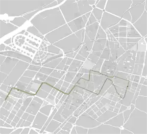 Parte del Grupo Grapa y cruza el centro por las calles Escultor Viciano, Gasset, Ruiz Zorrilla y San Vicente. Pasa por el Hospital Provincial, el centro comercial La Salera y el CEU Cardenal Herrera antes de llegar al Grupo San Lorenzo.
