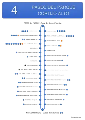 La línea 4 de la EMT de Málaga es una de la más antiguas de la ciudad, comunicando el centro de Málaga con la zona de Ortega y Gasset. En la actualidad, su recorrido comienza en la Plaza General Torrijos, en el Paseo del Parque, y finaliza en la Ciudad de la Justicia.