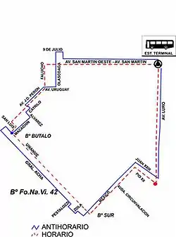 HORARIO: Pio XII, México, Unanue, Macachín, San Luis, Avda. Perón, Falucho, Avda. San Martín (O), Avda. San Martín (E), Avda. Luro.