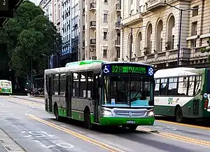 ![]() Un colectivo de la línea 62 circulando por el Metrobús del Bajo, en la Av. Leandro N. Alem | ||