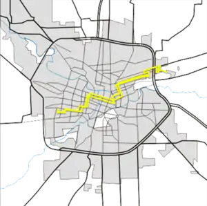 Desde Mercado Fruti-hortícola - Alcaraz - Machioni - Bulnes - Astori - Xanaes - Urien - Cruza Paso Nivel - Las Malvinas - Carassa - Altolaguirre Cruza Paso a Nivel - Bulevar Bulnes - Allende - P. Luis Monti - Altolaguirre - Cochabamba - Viamonte - Sarmiento - Bv. Guzmán - Bv. Perón - S. Jerónimo - 27 de abril – P. Los Andes - Pueyrredón - Sol de Mayo - Luis Agote - Isseas - Fierro - Chávez - G. Bell - Williams - Av. Abel - Figueroa - Kinsgley.