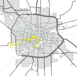 De Barrio Siete Soles / Tejas III - Escuela de Aviación por calle de Salida – Calle 51 – Calle 4 – Calle 53 – Rio Yuspe – Recalde – A. Alegre – Av. Fuerza Aérea – R. Arias – Williams –Curie - Isseas – Agote – Warnes - Rogatis – Gauna – Albeniz – Los Plátanos – Verdi – M.Vidal – Verdi – Chazarreta – Ceballos - A. Brown – Rogatis – P. Lozano – Peredo – Río Negro – Pueyrredon – P. Los Andes – Pje Funes – M. Moreno – Caseros – Vélez Sársfield – H. Irigoyen – Plaza España – H. Irigoyen – Av. Valparaíso – Haya de la Torre – M. López – Cruz Roja Argentina – Valparaíso y Saravia.