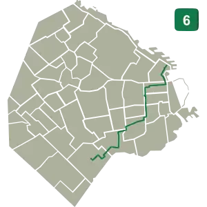 La línea 6 posee un recorrido que une Retiro con el barrio de Villa Soldati.