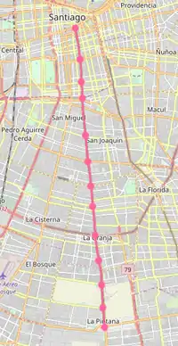 Lo Ovalle[nota 3] | 2030 | Av. Santa Rosa con Av. Lo Ovalle | La Granja/San Ramón/San Joaquín/San Miguel | |