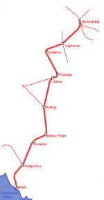 ![]() Mapa de la línea Belgrado-Bar | |||||||||||||||||||||||||||||||||||||||||||||||||||||||||||||||||||||||||||||||||||||||||||||||||||||||||||||||||||||||||||||||||||||||||||||||||||||||||||||||||||||||||||||||||||||||||||||||||||||||||||||||||||||||||||||||||||||||||||||||||||||||||||||||||||||||||||||||||||||||||||||||||||||||||||||||||||||||||||||||||||||||||||||||||||||||||||||||||||||||||||||||||||||||||||||||||||||||||||||||||||||||||||||||||||||||||||||||||||||||||||||||||||||||||||||||||||||||||||||||||||||||||||||||||||||||||||||||||||||||||||||||||||||||||||||||||||||||||||||||||||||||||||