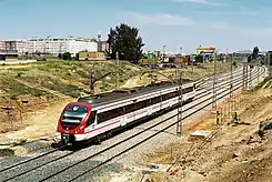 ![]() Un tren Civia de Cercanías Sevilla circula por la línea, tras pasar la estación de La Negrilla, en 2007. | ||||||||||||||||||||||||||||||||||||||||||||