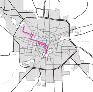 - Ida: : De Lautaro y Belardinelli por ésta - Cruz Roja Argentina - Maestro López - M. Allende - Haya de la Torre - Enrique Barros - Los Nogales - Concepción Arenales - Valparaíso - Plaza España - Chacabuco - San Jerónimo - 27 de abril - Paraguay - Cnel. Olmedo - Av. Colón - Zípoli - Betania - Javier López - M. Larra - Sagrada Familia - M. Pidal - Roque Funes - Malbran - Gigena - Tejeda - Hugo Wast – R. Núñez hasta Mujer Urbana.