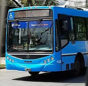 ![]() Mercedes-Benz operando la línea Enlace Noroeste, de la empresa Movi. En la cartelera de abajo se puede leer el acrónimo "Enor" correspondiente a la línea. | ||
