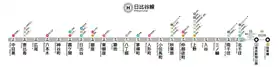 Código | Estación | Japonés | Longitud (km) | Transferencias | Ubicación | |
