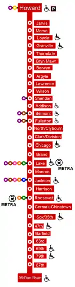 La línea Roja (en inglés: Red line) del Metro de Chicago comúnmente conocido como Chicago "L", consiste en 33 estaciones. La línea inicia en la estación Howard en Rogers Park a la estación 95th/Dan Ryan en el Centro de Chicago. La línea fue inaugurada en 1993.