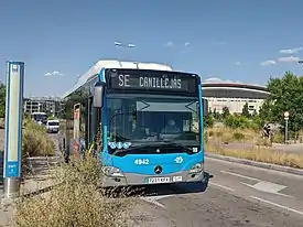 El Servicio Especial (S.E.) codificado como SE721 de la EMT de Madrid une el intercambiador de Canillejas con el Estadio Metropolitano.