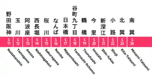 S15 | Sakuragawa | 桜川 | 3,7 | Hanshin: Línea Namba | Naniwa-ku, Osaka |