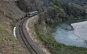 ![]() Línea Suigun entre estaciones Shimo-Ogawa y Saigane. | ||