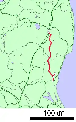 137,5 km Estación Mito a Estación Asaka-Nagamori + 9,5 km Estación Kami-Sugaya a Estación Hitachi-Ōta = 147 km | |