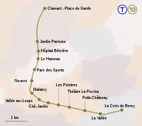 La Línea T10 de tranvía es una línea en construcción de la red de Tranvía de la Île de France, que unirá la estación de La Croix de Berny, de la Línea RER B, estación terminal del Trans-Val-de-Marne (TVM), con Clamart - Place du Garde. Permitirá abrir el sur de Hauts-de-Seine, más bien pobre en cuanto al transporte público comparado al resto del departamento, y dar servicio a zonas de gran actividad y con numerosos empleados, como el parque de actividades de Plessis-Clamart, así como a diversos equipamientos educativos y de investigación y zonas con alta densidad de población.