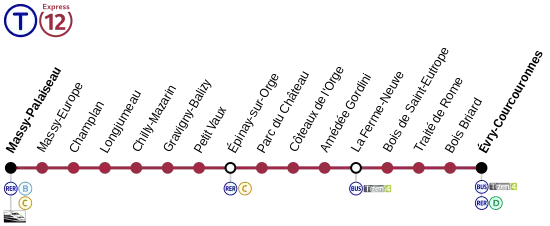 La Línea T12 Express de tranvía es unua línea en proyecto[1] que, combinando la actual vía del RER C (rama C8) desde su inicio en la estación de Massy - Palaiseau hasta la estación de Épinay-sur-Orge y una vía convencional de tranvía a la que se unirá en esta estación y que se prolongará hasta el final de la línea en la estación de Évry - Courcouronnes. El 22 de agosto de 2013 se declaraba proyecto de utilidad pública. Se pondría en marcha a finales de 2023.