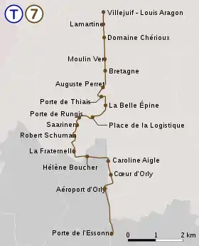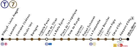 La Línea T7 de tranvía es una de las líneas de la red de Tranvía de la Île de France que une la cabecera de la línea 7 de metro Villejuif - Louis Aragon, en Villejuif, con Rungis, Orly y Athis-Mons conectando con el Aeropuerto de Orly y la línea de metro Orlyval y con TVM en la estación de Porte de Thiais. Entró en servicio el 16 de noviembre de 2013. A largo plazo, se ampliará hasta Juvisy-sur-Orge.