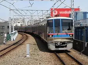 ![]() Un tren de la serie Toei 6300 en la estación Hasune. | ||
