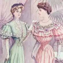 Línea Princesa o "vestido princesa" describe el vestido ajustado de mujer u otra prenda cortada en paneles largos sin una unión horizontal o separación en la cintura.[2][3]En lugar de confiar en los dardos para dar forma a la prenda, el ajuste se logra con costuras largas y moldeadas piezas de patrón.[4] Un nombre alternativo raramente utilizado para la línea Princesa fue el de vestido de línea francesa.[5][6]