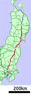 ![]() "Línea principal Tōhoku" en rojo, Tokio a Morioka. | ||