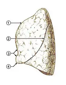 - Una parte del maxilar inferior llamada língula del maxilar inferior o lingula mandibulae.