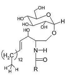 Los glicolípidos, también llamados esfingoglicolípidos, son lípidos sintetizados a partir de una molécula de cerámida a quien se ha añadido un glúcido.