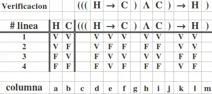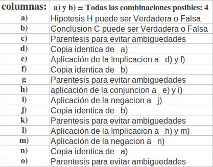Queda demostrado por la columna l), debido a que en ella todos los valores son verdaderos.