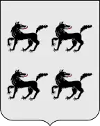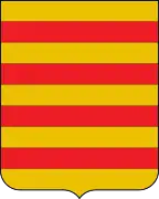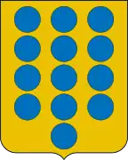 - En campo de gules trece bezantes de oro.