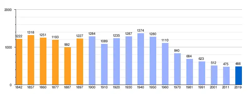Población de derecho (1842-1897, excepto 1857 y 1860 que es población de hecho) según los censos de población del siglo XIX. Población de derecho (1900-1991) o población residente (2001-2011) según los censos de población del INE. Población según el padrón municipal de 2019 del INE. |