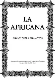 L'Africaine (título original en francés; en español, La africana) es una grand opéra en cinco actos con música de Giacomo Meyerbeer (su última obra) y libreto en francés de Eugène Scribe. La obra trata de acontecimientos ficticios en la vida del personaje histórico Vasco de Gama.