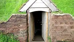Reconstrucción de la entrada de una de las casas vikingas en el Sitio Histórico Nacional de L'Anse aux Meadows.