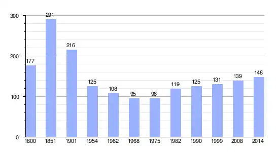 Gráfica de evolución demográfica de L'Aubépin entre 1800 y 2014 |