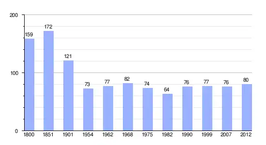 Gráfica de evolución demográfica de L'Hôpital-Saint-Blaise entre 1800 y 2012 |