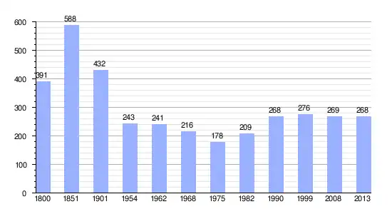 Gráfica de evolución demográfica de L'Hermitière entre 1800 y 2013 |