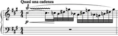 La introducción crea un contexto de tonos enteros. Esto cambia a una escala lidia en la, en los compases 15-21, transiciones, a través de la adición de un sol natural, hasta llegar al contexto de tonos enteros de un nuevo motivo en el compás 21. Este contexto de la escala lidia en la sirve como transición del modo de tonos enteros en la a una escala mayor en la, con declinaciones ocasionales a la escala lidia en re, del segundo tema en el compás 67.