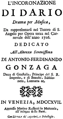L'incoronazione di Dario (título original en italiano; en español, La coronación de Darío) es una ópera en tres actos con música de Antonio Vivaldi y libreto en italiano de Adriano Morselli. Se estrenó en el Teatro Sant'Angelo de Venecia el 23 de enero de 1717.[1]