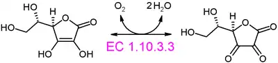Por lo tanto, los dos sustratos de esta enzima son el L-ascorbato y O2, mientras que sus dos productos son deshidroascorbato y H2O.