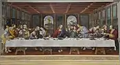 La última cena (en italiano: Il cenacolo o L’ultima cena) es una pintura mural original de Leonardo da Vinci ejecutada entre 1495 y 1498.[1][2] Se encuentra en la pared sobre la que se pintó originalmente, en el refectorio del convento dominico de Santa Maria delle Grazie, en Milán (Italia),[3] declarado Patrimonio de la Humanidad por la Unesco en 1980.[4] La pintura fue elaborada para su patrón, el duque Ludovico Sforza de Milán. No es un fresco tradicional, sino un mural ejecutado al temple y óleo sobre dos capas de preparación de yeso extendidas sobre enlucido. Mide 460 cm de alto por 880 cm de ancho. Muchos expertos e historiadores del arte consideran La última cena como una de las mejores obras pictóricas del mundo.[5]