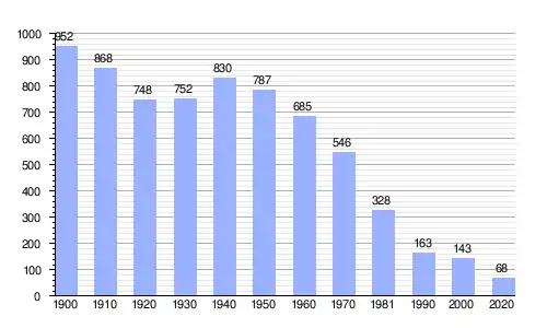 Gráfica de evolución demográfica de La Alameda de Gardón entre 1900 y 2020 |