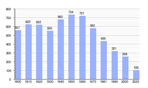Gráfica de evolución demográfica de La Alberguería de Argañán entre 1900 y 2020 |