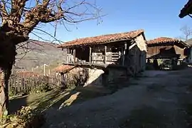 En el pueblo también se pueden encontrar cuatro hórreos, uno de ellos podría tener más de 500 años de antigüedad, dos paneras y un molino, conocido como Molín de Curuxeo.