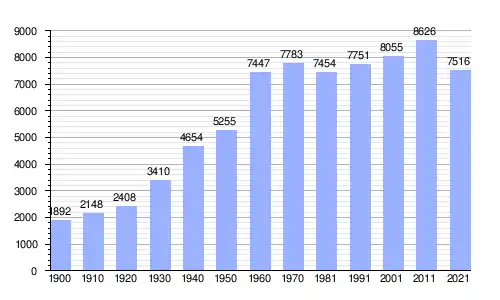 El municipio cuenta a 1 de enero de 2020 con 7.516 habitantes[27] y una densidad de población de 61,6 hab./km².[28]
