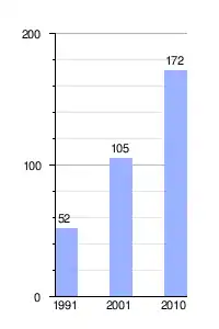 Gráfica de evolución demográfica de La Armonía entre 1991 y 2010 |