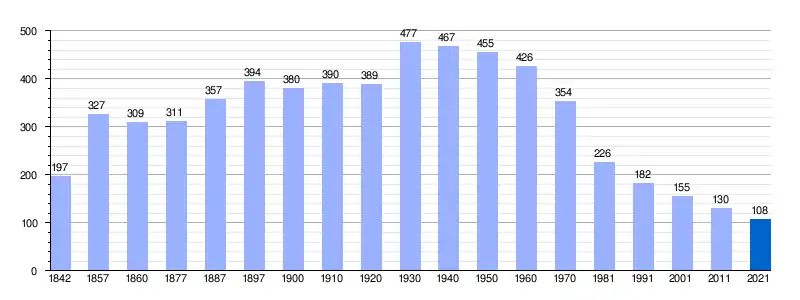 Población de derecho (1842-1991, excepto 1857 y 1860 que es población de hecho) o población residente (2001-2011) según los Censos de Población desde 1842. Población según el padrón municipal de 2021 del INE. |